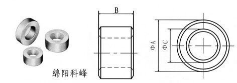 T型圆环磁心外形尺寸标注图表: